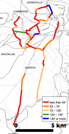 The first is the speeding up of the Green Line (formerly the Central Corridor) between Minneapolis and Saint Paul. When it first opened, the signal system of the line was not optimized for transit: trains often waited at cross streets for vehicular traffic despite the promise of transit signal priority. While the line is not perfected in the way that the Blue Line, which has gated, at-speed grade crossings, operates (and, running in the center of a city street, it likely never will be) the kinks are being worked out, and the promise of a 39-minute downtown-to-downtown ride is coming to fruition (the downtown sections are still quite slow and trains have minimal signal priority there). Speeds have also been improved, to 40 mph between most stations and 50 where there are no cross streets for long distances. (Note that this center-running light rail line runs faster than any MBTA subway or light rail service.) Further progress may be made, but the cities have not kowtowed to a few delayed drivers, and reaped both the operational efficiencies of running trains faster, as well as the potential for higher ridership. Trains run just every ten minutes, but with three 100-foot-long railcars, they have a capacity of more than 500 passengers each.